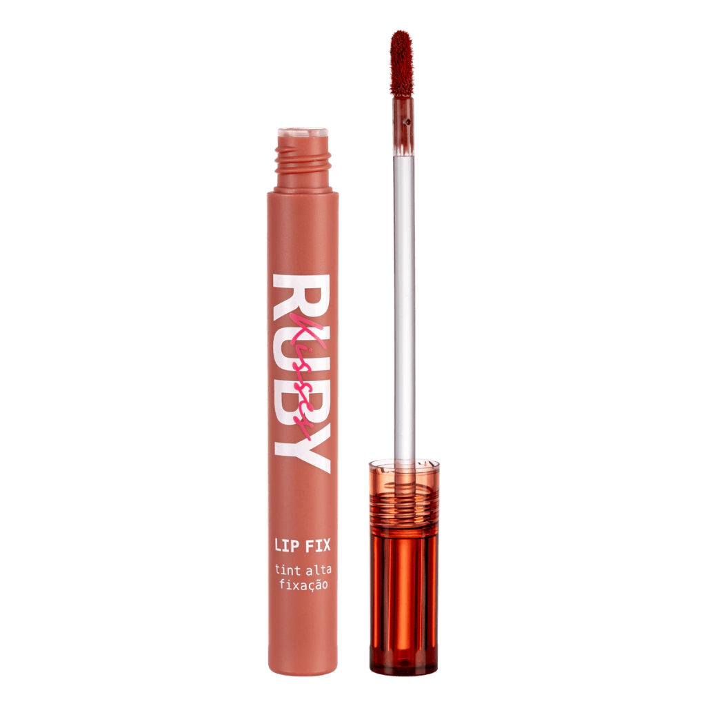 Lip Fix Tint - Ruby Kisses, a escolha perfeita para quem busca lábios com cor intensa e acabamento matte impecável! Sua textura aveludada proporciona um toque confortável e uma aplicação suave, garantindo um visual sofisticado e duradouro.